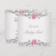 Rosas rosa e damasco branco prateado com corrente de joia prateada convite de chá de bebê menina classe