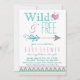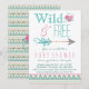 Convite de chá de bebê menina tribal com fundo pastel pink e azul teal com design sudoeste Azteca e fonte estilosa Wild and Free com coração e flecha bonitos. Você pode personalizar facilmente este adorável convite de chá de bebê tribal boho Wild and Free para o seu evento simplesmente adicionando seus detalhes. Você também pode adicionar uma cor de fundo e remover ou mover o coração de trás.