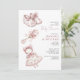 Um convite de chá de bebê de menina em toile rosa com ilustrações encantadoras de berçário vintage, incluindo sapatos de bebê delicados com laços, um chocalho de bebê amarrado com fita e uma boneca de livro de histórias doce. O padrão toile em rosa suave e os detalhes de berçário inspirados em relíquias criam um convite gentil e feminino, perfeito para celebrar a chegada de uma menina. Projetado com uma estética de berçário vintage atemporal, este convite é adequado para chás de bebê tradicionais, celebrações clássicas em rosa e encontros temáticos de livro de histórias, onde detalhes delicados e charme nostálgico definem o tom. Disponível impresso, como download digital ou ambos.
