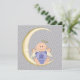 Convite de chá de bebê menino azul com lua amarela e anjo.