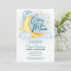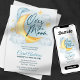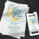 Este convite de chá de bebê aquarela Sobre a Lua apresenta uma adorável lua dormindo com nuvens e estrelas. Perfeito para um chá de bebê de menino.