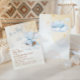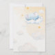 Este design doce foi inspirado em ilustrações sonhadoras de berçário e livros de histórias de aquarela macia. Um pequeno elefante azul balança suavemente entre nuvens fofas e estrelas douradas, criando uma cena celestial mágica. Perfeito para celebrar o bebê que está a caminho com um convite de chá de bebê charmoso e caprichoso.