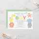 Este convite de chá de bebê adorável apresenta amigos animais da selva fofos — uma girafa, leão, macaco, elefante e hipopótamo — dispostos de forma divertida em torno do texto em negrito "MENINO" em uma paleta de cores verde, amarelo, laranja, azul e cinza. O tema de safari alegre é perfeito para dar as boas-vindas a um menino. Um fundo de bolinhas verdes coordena e completa o design de dois lados. Toda a redação é totalmente personalizável para sua celebração.
