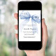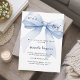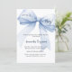 Um fundo branco elegante, decorado com um grande laço azul. Personalize e adicione um nome e detalhes da festa.