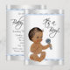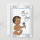 Convite de chá de bebê menino étnico com um adorável menino étnico em um lindo fundo prateado e azul bebê. Você pode personalizar facilmente este convite de chá de bebê azul e prata elegante, simplesmente adicionando seus detalhes no estilo de fonte de sua escolha.
