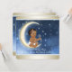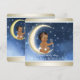 Convite de chá de bebê lua e volta com céu noturno azul, estrelas brancas e lua amarela com convites de chá de bebê menino étnico doce. Este convite de chá de bebê amo você até a lua e de volta é facilmente personalizado para o seu evento adicionando detalhes do evento, estilo de fonte, tamanho e cor da fonte e texto.