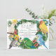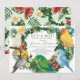 Celebre a chegada iminente do seu pequeno selvagem com este convite de chá de bebê temático tropical caprichoso. O design apresenta um grupo de papagaios exóticos adoráveis e folhagens tropicais em aquarela com flores