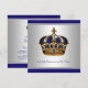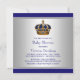 Convite de chá de bebê menino príncipe coroa azul prata e dourado.