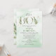 Convite de chá de bebê menino verde botânico elegante com um lindo fundo verde aguado aquarela, bela folhagem rústica verde enrolada em torno da palavra "MENINO", respingos de glitter dourado e um modelo de celebração de chá de bebê moderno e fácil de personalizar.