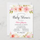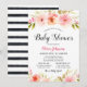 Convites Chá de Bebê Moderno com Listra Preta e Floral Rosa