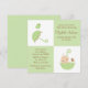 Convites de chá de bebê elegantes com ilustração de bebê fofo e um pássaro em um guarda-chuva. Arte © Cocoa Studio