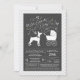 Inclua o irmão ou irmã mais velho(a) bebê de quatro patas na celebração com este adorável design de chá de bebê com Doberman Pinscher! Perfeito para um amante de cães com um bebê a caminho. O Dobermann Pinscher está ao lado de um adorável carrinho de bebê vintage. O fundo cinza de quadro-negro torna-o perfeito para um chá de bebê neutro ou misto!