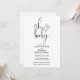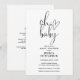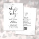 Este convite de chá de bebê com roteiro elegante e neutro em termos de gênero pode ser personalizado com todas as informações da sua celebração especial com o código QR do seu registro e detalhes do evento no verso. Criado por Thisisnotme©