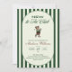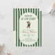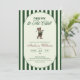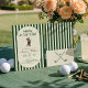 Celebre o amor e o par perfeito com este elegante convite de chá de bebê de golfe "NOVATO NO CLUBE". Projetado com uma paleta verde clássica e tipografia refinada, este convite apresenta tacos de golfe cruzados e uma borda listrada limpa, laço verde, criando um visual atemporal e sofisticado inspirado no esporte, com um ursinho fofo no verso.
