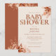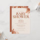 Um convite de chá de bebê outono elegante com tipografia terracota elegante e folhagem floral rústica. Criado por Thisisnotme©