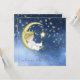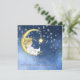 Convites de chá de bebê azul adorável, estrelas brancas e lua amarela para menino. Este doce convite de chá de bebê 'eu te amo até a lua e de volta' é facilmente personalizado para o seu evento adicionando os detalhes do evento, estilo de fonte, tamanho e cor da fonte e texto.