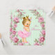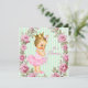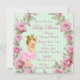 Convite de chá de bebê rosa e verde com princesa adorável vestindo tutu e colar de pérolas em um lindo fundo rosa com rosas e verde menta. Você pode personalizar este convite de chá de bebê elegante rosa e verde com os detalhes do seu evento no estilo de fonte, cor da fonte e texto de sua escolha.