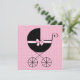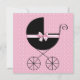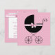 Adorável rosa com bolinhas e carruagem de bebê preta elegante envolta em um laço rosa doce. Convite de chá de bebê menina rosa com bolinhas elegante e doce. Adicione seus detalhes na frente e/ou atrás adicionando os detalhes do seu evento, estilo de fonte, tamanho e cor da fonte e texto.