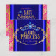 Convite de chá de bebê indiano com lindo damasco azul real safira, rosa quente magenta e dourado e convite de chá de bebê princesa coroa de diamantes. Este convite de chá de bebê colorido Boho chic marroquino Bollywood é facilmente personalizado para o seu evento, adicionando seus detalhes no estilo de fonte e cor e redação de sua escolha.