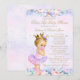 Convite de chá de bebê drive by da princesa com linda princesa loira usando máscara e um lindo tutu rosa e roxo e coroa em um lindo fundo floral rosa e roxo. Este chá de bebê drive by da princesa é facilmente personalizado para o seu evento simplesmente mudando o texto. Você pode alterar a cor do texto, escolher o estilo da fonte, a redação, etc.