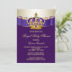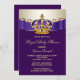 Convite de chá de bebê elegante em roxo e dourado com coroa e faixa em roxo e dourado em um fundo roxo e dourado. Você pode personalizar facilmente este convite de chá de bebê real em roxo e dourado adicionando os detalhes do seu evento no estilo de fonte e cor, texto, layout, etc., de sua escolha. Você também pode alterar a cor do fundo.