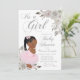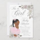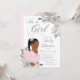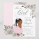 Convite de chá de bebê princesa rosa e prata com adorável bebê africana com cabelos trançados fofos usando um lindo tutu de princesa rosa e laço no cabelo sobre um fundo floral em aquarela rosa e prata. Este convite de chá de bebê rosa e prata é facilmente personalizado para o seu evento, basta adicionar os detalhes do evento. As palavras É uma Menina e Chá de Bebê não podem ser alteradas. Você pode alterar a cor do fundo.