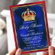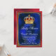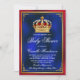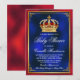 Convite de chá de bebê real com coroa vermelha e dourada bonita em um belo fundo vermelho, azul real e dourado. Você pode alterar o texto conforme necessário para o seu evento. Imprima em papel brilhante para obter os melhores resultados.