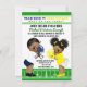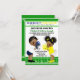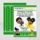 Convites de revelação de gênero de futebol com menino e menina afro-americanos étnicos adoráveis vestindo terninhos de futebol azuis e amarelos em um campo de futebol. Você pode personalizar facilmente este convite de revelação de gênero de futebol para o seu evento simplesmente adicionando seus detalhes.