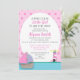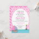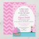 Convite para chá de fraldas de menina. Cor-de-rosa e azul com um barco e um farol em uma bolinhas e fundo do diafragma.