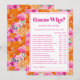 Divirta-se no chá de bebê com este cartão de jogo divertido, apresentando vibrantes flores cor-de-rosa e laranja e detalhes editáveis. Personalize com facilidade utilizando as opções "personalizar" e "editar usando a ferramenta de design".