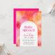 Este convite de chá de bebê moderno apresenta um design elegante rosa e laranja. com este esquema de cores vibrante e moderno de rosa e laranja. Um convite de chá de noiva de verão divertido com um fundo de aquarela rosa e laranja.