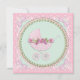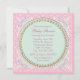 Convites de chá de carruagem de bebê com pérolas, laços e renda rosa e verde elegantes. Este convite de chá de bebê rosa e verde é facilmente personalizado para o seu evento, adicionando detalhes do evento, estilo de fonte, tamanho e cor da fonte e texto.