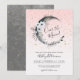 Convite de Chá de Bebê "Além da Lua". Celebre um momento mágico com este tema caprichoso e boêmio de chá de bebê celestial. "Além da Lua!" é exibido de forma proeminente dentro de uma lua crescente em um fundo gradiente de rosa bebê para branco, que pode ser personalizado para qualquer cor. Um visual elegante, porém divertido, com uma lua crescente em aquarela, estrelas douradas e flores de anemona brancas, penas e outros acentos que dão um toque boêmio. O verso apresenta uma aquarela cinza de noite estrelada. O design apresenta uma coloração rosa, preta, branca, dourada (sem brilho ou folha) e cinza no geral. O texto é apresentado em uma mistura elegante de tipografia cursiva e uma fonte serifada em preto. Este convite é perfeito para celebrar a futura mamãe e adiciona um toque místico ao seu dia especial. Convite de Chá de Bebê "Além da Lua" em Aquarela, Simples, Elegante e Sofisticado. Disponível como