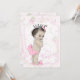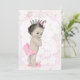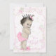 Bebê menina doce com calças rumba rosa, laço de cabelo, chinelos de coelho e coroa de princesa em um belo fundo shab chic rosa pastel. Você pode personalizar este convite de chá de bebê rosa pálido com os detalhes do seu evento no estilo de fonte, cor de fonte e texto de sua escolha.