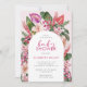 Fugir para o paraíso com este convite de Chá de Bebê Rosa Tropical. Este lindo convite é repleto de toques elegantes e modernos, flores românticas e cores vibrantes. A impressionante obra de arte em aquarela inclui folhas de palmeira verde e monstera, orquídeas magenta e fúcsia brilhantes e flores de hibisco rosa suave. Encontre itens correspondentes na Coleção Floral Tropical Colorida.