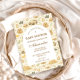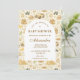 Um doce design de safari em estilo de livro de histórias com suaves animais bebês em aquarela, incluindo leões, girafas e elefantes, cercados por uma suave vegetação da selva e um delicado fundo botânico. A paleta neutra e quente de creme, dourado mel e azeitona suave cria uma estética atemporal inspirada na natureza, enquanto o layout arqueado elegante fornece um belo espaço para os detalhes do evento.