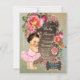 Linda rosa, pérolas elegantes e bebê menina vestida com uma linda saia de ballet rosa em um belo fundo azul turquesa e dourado. Este convite elegante de saia de ballet é facilmente personalizado para o seu evento, adicionando seus detalhes no estilo de letra, cor e texto de sua escolha. Este é um design impresso sem pérolas, jóias, brilho, etc. reais.