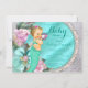 Convite de chá de bebê da sereia com adorável bebê sereia com tiara de diamante e pérola em um lindo fundo floral de lavanda e azul aqua cintilante. Este lindo convite de chá de bebê da sereia é facilmente personalizado para o seu evento, basta adicionar seus detalhes no estilo de letra, cor e texto de sua escolha. Este é um design impresso sem jóias reais, laços, brilho, etc.