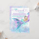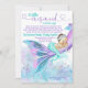 Convites de chá de bebê sereia por correio com adorável bebê sereia morena com cauda azul turquesa bonita dormindo em uma linda cauda de sereia rosa, roxa e azul turquesa e fundo submarino. Este convite de chá de bebê sereia é facilmente personalizado com seus detalhes.