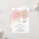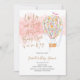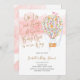 “Subindo, Subindo e Voando.” Convite de chá de bebê em aquarela em rosa e dourado com uma adorável ilustração de um balão de ar quente floral e nuvens cor-de-rosa. Basta personalizar com o seu texto ou clicar em “personalizar mais” para adicionar uma cor de fundo, alterar o layout ou a fonte.