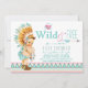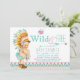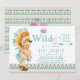 Convite de chá de bebê tribal feminino com linda bebê vestindo um traje nativo americano e segurando um capturador de sonhos em um fundo pastel rosa e azul teal com design sudoeste Azteca e fonte estilosa Wild and Free com coração e flecha. Você pode personalizar facilmente este adorável convite de chá de bebê tribal Wild and Free para o seu evento simplesmente adicionando seus detalhes. Você também pode adicionar uma cor de fundo.