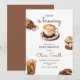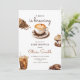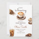Celebre a chegada iminente de um pequeno com este adorável convite de chá de bebê temático de café, apresentando lattes quentes, café gelado, delícias de creme chantilly e grãos de café. A frase elegante 'Um Bebê Está Sendo Preparado' torna este convite perfeito para reuniões aconchegantes em casa ou chás de bebê estilo café trendy.