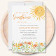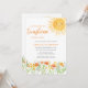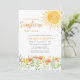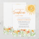Este convite de chá de bebê adorável apresenta "Um pequeno raio de sol está quase aqui!" em tipografia estilosa, acompanhado por um sol em aquarela e flores silvestres.