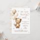 Celebre o seu chá de bebê neutro com o nosso delicioso convite de chá de bebê em aquarela! 🎈 Com um urso bege e marfim doce cercado por balões rústicos boho, 🐻🎈 contra um pano de fundo de corações macios rabiscados, 💖 é a combinação perfeita de doçura e simplicidade para o seu dia especial!