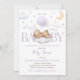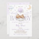 Convite de Chá de Bebê Urso Teddy Balão Lilás Nuvens Estrelas
