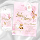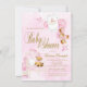 Convites Chá de Bebê Urso Teddy Rosa Dourado Menina