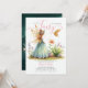 Uma ilustração encantadora de aquarela com uma doce princesa de fada em um pequeno jardim encantado com um esmeralda verde e dourado esquema de cores, enfeita este elegante e adorável convite para chá de menina. Perfeito para comemoração da primavera, eventos de Páscoa, fête de jardim de verão, chá de fraldas piquenique charcado ou para comemoração do ano inteiro em homenagem a uma mãe que ama a floresta encantada, tema de fada.