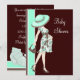 Convites elegantes de chá de bebê em verde menta e marrom chocolate para gestante, neutros quanto ao sexo da criança. Este adorável convite de chá de bebê em verde menta e marrom pode ser facilmente personalizado para o seu evento simplesmente escolhendo o botão "Personalize!" para começar a adicionar os detalhes do seu evento, estilo de fonte, tamanho e cor da fonte e texto. Por favor, note que todos os cartões e desenhos de convites que você encontrará na Zazzle são gráficos impressos sem joias, laços, relevos, rebaixos ou peças ou partes adicionadas.