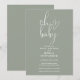 Este convite de chá de bebê gender neutral com elegante escrita em verde oliva pode ser personalizado com todas as informações da sua celebração especial. Desenhado por Thisisnotme©
