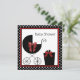 Carrinho de bebê e presente elegante preto branco e vermelho e convites de chá de bebê menino ou menina preto e vermelho. Adicione seus detalhes na frente e no verso deste convite de chá de bebê de bolinhas vermelhas e pretas adicionando os detalhes do seu evento, estilo de fonte, tamanho e cor da fonte e texto. Por favor, observe - todos os desenhos de convite que você encontrará no Zazzle são gráficos impressos em papel liso sem joias, laços, relevos, dourados ou peças ou partes adicionadas.